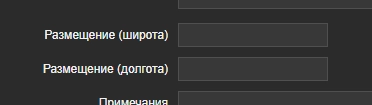 Первый способ - прописывание точных координат в самих инвентарных данных. Для этого листаем вниз и находим 2 поля "широта" и "долгота" и в них вписываем координаты.