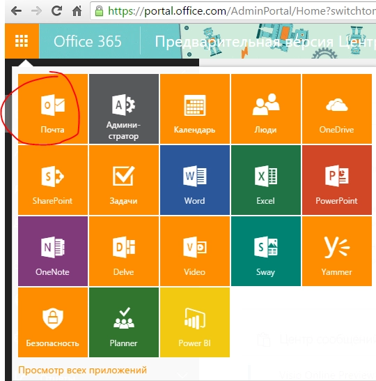 2. На панели навигации выберите Outlook (или Почта) или щелкните средство запуска приложений