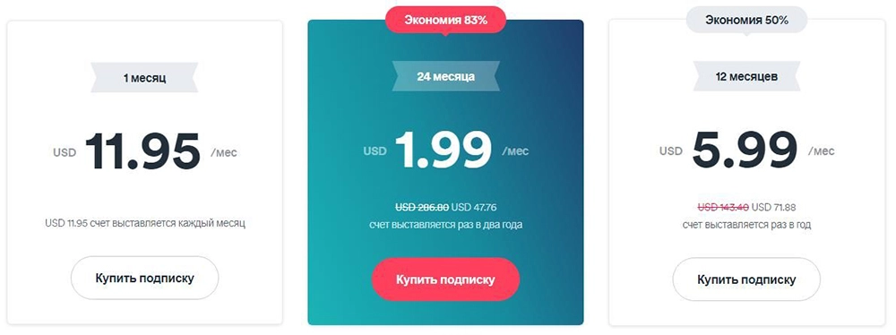 - 47,76 долл. за 2 года (1,99 ежемесячно).