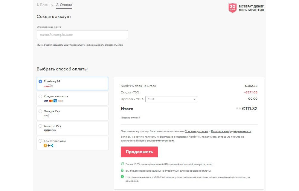 Обратите внимание! Гарантия возврата средств стандартная для всех платных VPN – 30 дней.
