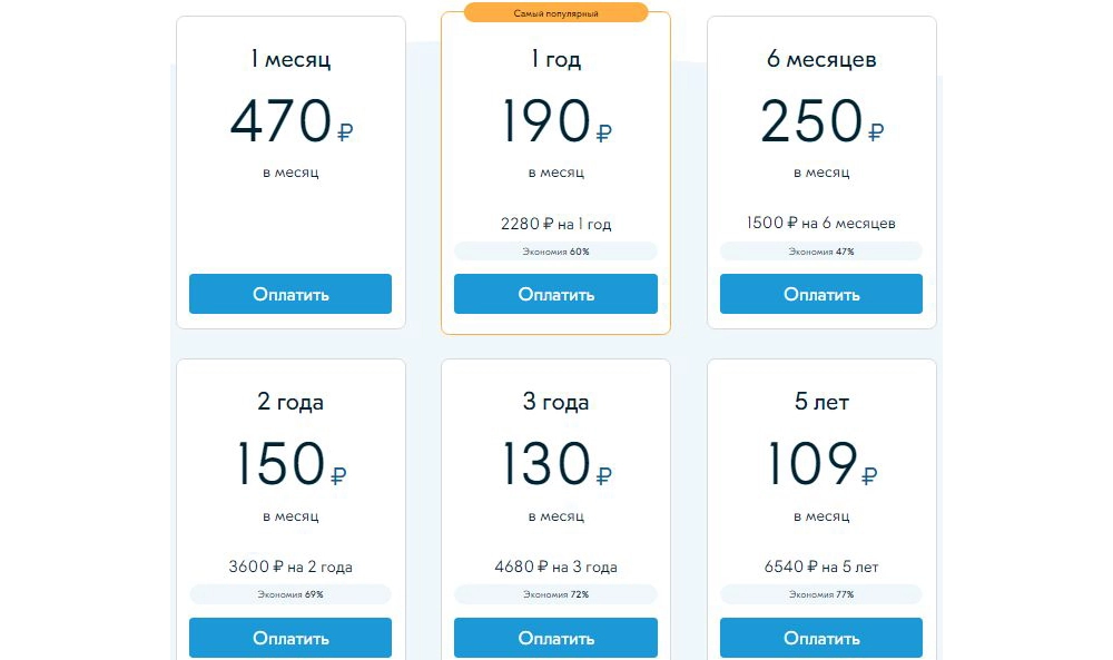 - 2280 руб. – на 1 год (190 руб. в месяц, можно сэкономить 60%);