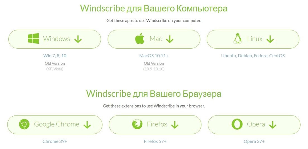 Разработчики Windscribe предусмотрели 2 типа ПО: