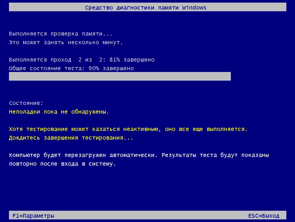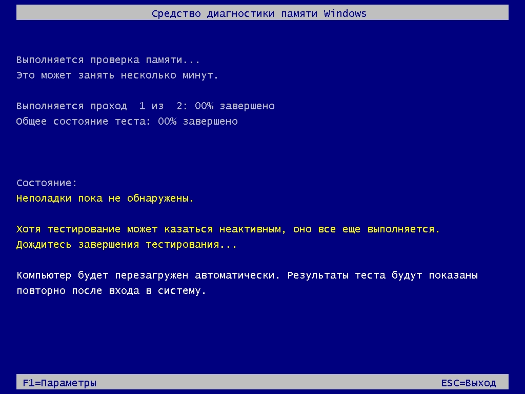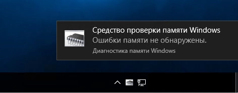 Если же ошибок не будет, то после окончания тестов компьютер будет перезагружен и в панели задач появится уведомление об отсутствии ошибок.