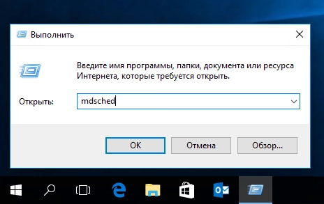 Для того, чтобы запустить проверку оперативной памяти, необходимо выбрать "Пуск -> Выполнить" или нажать Win+R и выполнить команду mdsched.
