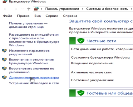 - Заблокировать порты в Бренмауэре Windows (ниже инструкция под Windows 10), в Windows 7 зайти в Панель управления - Брендмауэр и выполнить те же операции: