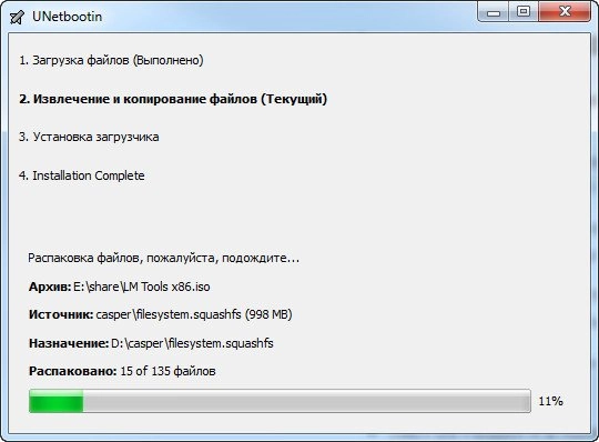 После полной загрузки начинается распаковка и копирование файлов. На скриншоте установка из образа, так как мне нужно было из образа извлечь, но суть остается та же.