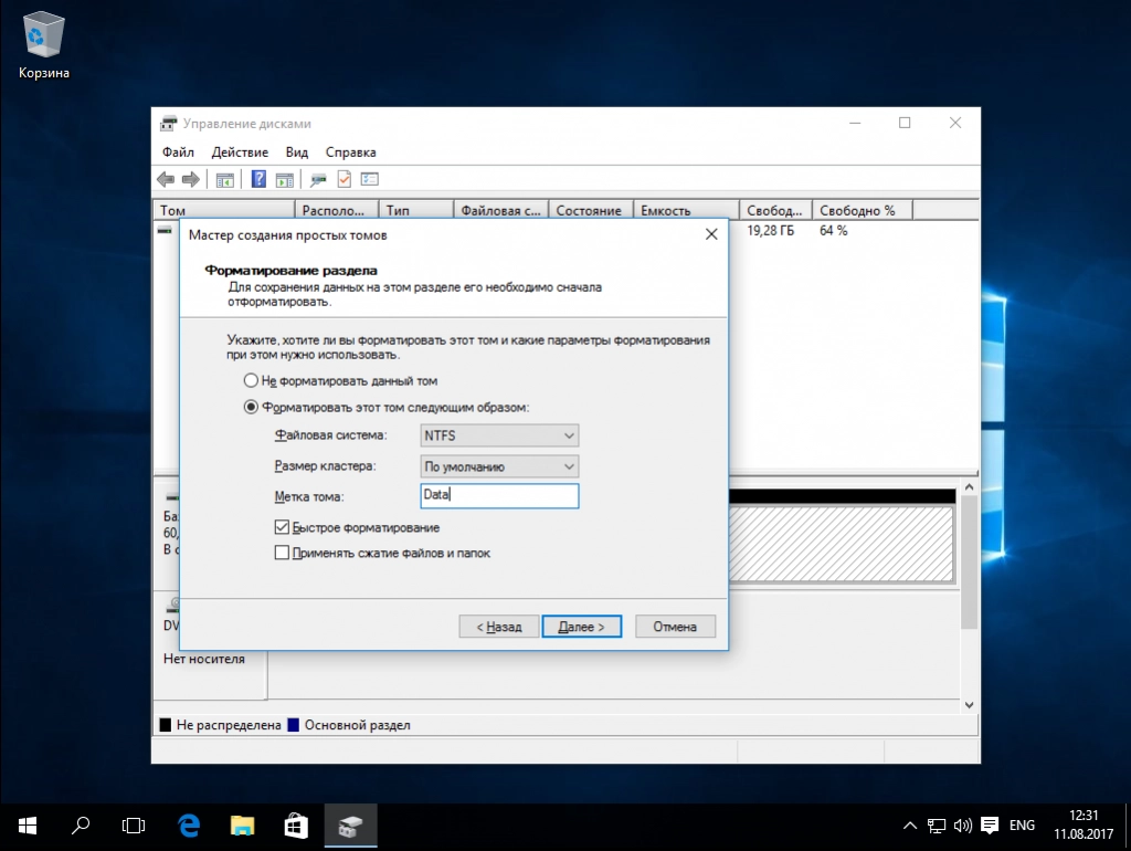 Нам откроется "Мастер создания простого тома". Нажимаем "Далее"