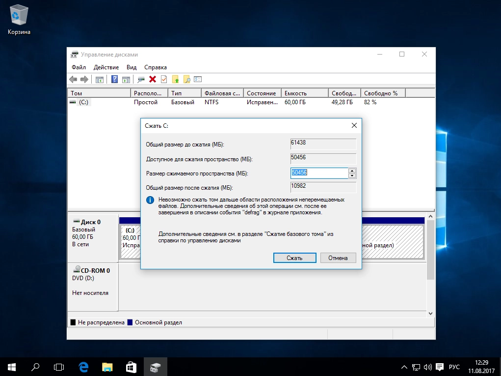 Доступное для сжатия пространство - сколько максимально можно от него отрезать (мы не рекомендуем отрезать максимум, особенного с системного диска!!!)