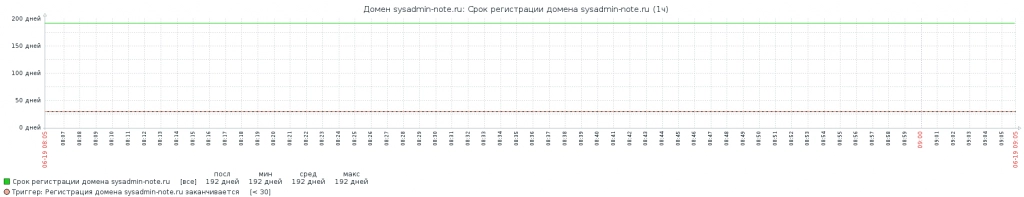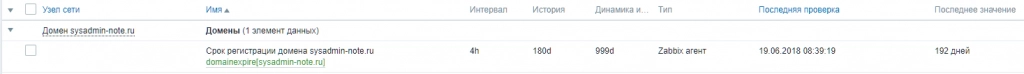mcedit /etc/zabbix/zabbix_agentd.conf UserParameter=domainexpire[*],/usr/lib/zabbix/externalscripts/checkdomainexpire.sh $1Перезапускаем агента: