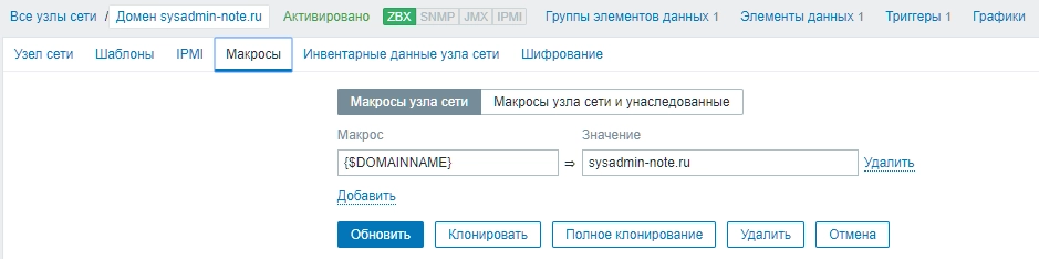 Так с создание узла разобрался. Но вот теперь такой вопрос, почему у элемента данных такая ошибка ? Value "sh: 1: /usr/lib/zabbix/externalscripts/checkdomainexpire.sh: not found" of type "string" is not suitable for value type "Numeric (unsigned)" ?