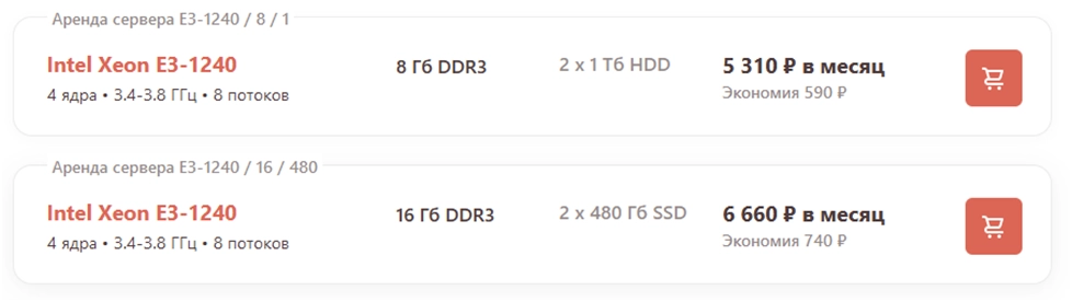 Минимальная конфигурация на Xeon-E3 начинается как раз с 5000 руб.
