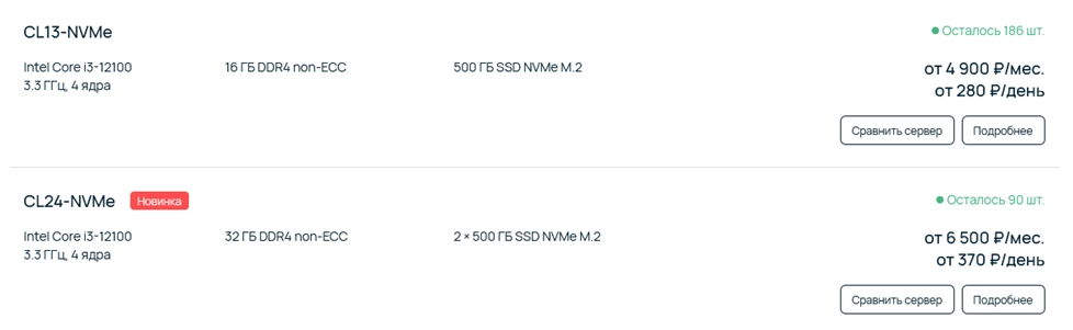 Среди новых серверов можно посмотреть крупных игроков, таких как reg.ru. Они предлагают «бюджетные» конфигурации от 7000 руб/мес.
